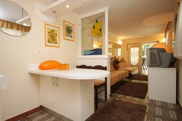 Appartamento può accogliere 5 ospiti. I letti sono disposti nelle camere da letto che sono 1, e nella camera di soggiorno, su 39m2. Gli ospiti hanno a disposizione il proprio terrazzo per godere nelle calde serate estive. Si può preparare il cibo utilizzando il barbecue comune.