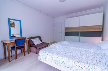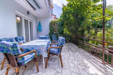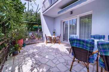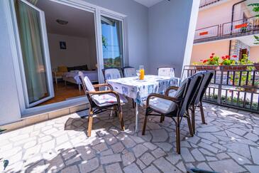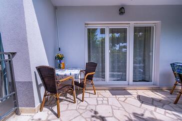 Appartamento può accogliere 6 ospiti. I letti sono disposti nelle camere da letto che sono 2, e nella camera di soggiorno, su 72m2. Gli ospiti hanno a disposizione il proprio terrazzo per godere nelle calde serate estive. Si può preparare il cibo utilizzando il barbecue comune.