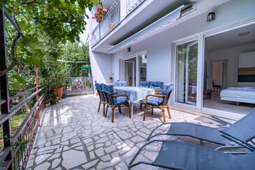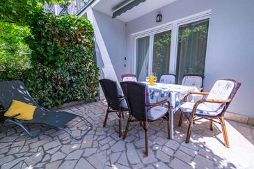 Appartamento può accogliere 6 ospiti. I letti sono disposti nelle camere da letto che sono 2, e nella camera di soggiorno, su 72m2. Gli ospiti hanno a disposizione il proprio terrazzo per godere nelle calde serate estive. Si può preparare il cibo utilizzando il barbecue comune.