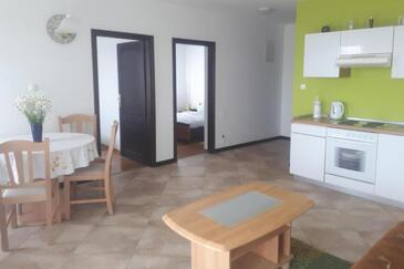 Appartamento può accogliere 4 ospiti. I letti sono disposti nelle camere da letto che sono 2, su 50m2. Gli ospiti hanno a disposizione il proprio terrazzo per godere nelle calde serate estive. Dall'appartamento si gode di una vista sul mare. Si può preparare il cibo utilizzando il barbecue comune. Durante il soggiorno gli ospiti possono utilizzare la piscina comune.