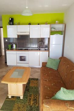 Appartamento può accogliere 4 ospiti. I letti sono disposti nelle camere da letto che sono 2, su 50m2. Gli ospiti hanno a disposizione il proprio terrazzo per godere nelle calde serate estive. Dall'appartamento si gode di una vista sul mare. Si può preparare il cibo utilizzando il barbecue comune. Durante il soggiorno gli ospiti possono utilizzare la piscina comune.