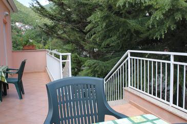 Appartamento può accogliere 4 ospiti. I letti sono disposti nelle camere da letto che sono 2, su 34m2. Gli ospiti hanno a disposizione il proprio terrazzo per godere nelle calde serate estive. Si può preparare il cibo utilizzando il barbecue comune. Nell'unità di alloggio si possono portare gli animali domestici con un pagamento supplementare.