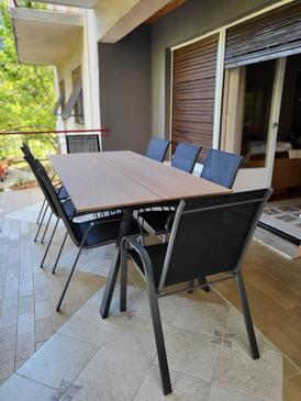 Appartamento può accogliere 8 ospiti. I letti sono disposti nelle camere da letto che sono 3, e nella camera di soggiorno, su 91m2. Gli ospiti hanno a disposizione il proprio terrazzo per godere nelle calde serate estive. Si può preparare il cibo utilizzando il barbecue comune.