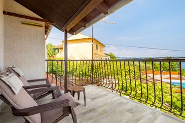Casa può accogliere 5 ospiti. I letti sono disposti nelle camere da letto che sono 3, su 73m2. Gli ospiti hanno a disposizione il proprio terrazzo per godere nelle calde serate estive. Dalla casa si gode di una vista sul mare. Per il piacere totale e il relax c'è il barbecue privato solo per gli ospiti di quest'alloggio. Durante il soggiorno gli ospiti si possono rilassare nella piscina privata. Nell'unità di alloggio si possono portare gli animali domestici con un pagamento supplementare. Arrivati nell'unità d'alloggio i clienti devono pagare un deposito (il prezzo è indicato sul sito).