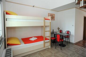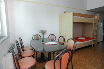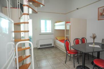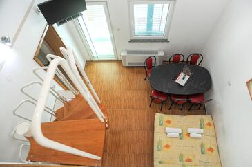 Appartamento può accogliere 6 ospiti. I letti sono disposti nelle camere da letto che sono 2, e nella sala da pranzo, su 44m2. Gli ospiti hanno a disposizione il proprio terrazzo per godere nelle calde serate estive. Dall'appartamento si gode di una vista sul mare. Durante il soggiorno gli ospiti possono utilizzare la piscina comune.