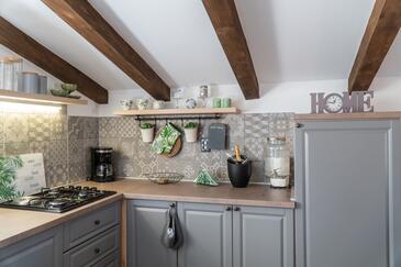 Casa può accogliere 12 ospiti. I letti sono disposti nelle camere da letto che sono 5, e nella camera di soggiorno, su 203m2. Gli ospiti hanno a disposizione il proprio balcone per godere delle calde serate estive. Per il piacere totale e il relax c'è il barbecue privato solo per gli ospiti di quest'alloggio. Durante il soggiorno gli ospiti possono utilizzare la piscina comune. Nell'unità di alloggio si possono portare gli animali domestici senza alcun pagamento supplementare.