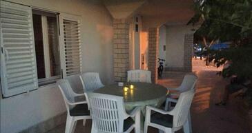 Appartamento può accogliere 7 ospiti. I letti sono disposti nelle camere da letto che sono 3, su 74m2. Gli ospiti hanno a disposizione il proprio terrazzo per godere nelle calde serate estive. Dall'appartamento si gode di una vista sul mare. Si può preparare il cibo utilizzando il barbecue comune.