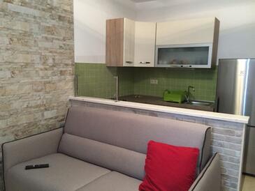 Appartamento può accogliere 5 ospiti. I letti sono disposti nelle camere da letto che sono 1, e nella camera di soggiorno, su 34m2. Gli ospiti hanno a disposizione il proprio terrazzo per godere nelle calde serate estive. Dall'appartamento si gode di una vista sul mare. Si può preparare il cibo utilizzando il barbecue comune. Nell'unità di alloggio si possono portare gli animali domestici senza alcun pagamento supplementare. Altri clienti o proprietari passano per terrazzo dell'unità d'alloggio prenotata.