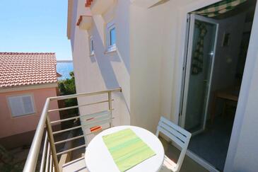 Appartamento può accogliere 5 ospiti. I letti sono disposti nelle camere da letto che sono 2, su 55m2. Gli ospiti hanno a disposizione il proprio terrazzo per godere nelle calde serate estive. Dall'appartamento si gode di una vista sul mare. Si può preparare il cibo utilizzando il barbecue comune.