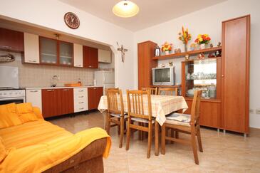 Appartamento può accogliere 8 ospiti. I letti sono disposti nelle camere da letto che sono 3, su 97m2. Gli ospiti hanno a disposizione il proprio terrazzo per godere nelle calde serate estive. Dall'appartamento si gode di una vista sul mare. Si può preparare il cibo utilizzando il barbecue comune. Arrivati nell'unità d'alloggio i clienti devono pagare un deposito (il prezzo è indicato sul sito).