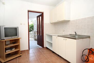 Appartamento può accogliere 6 ospiti. I letti sono disposti nelle camere da letto che sono 2, e nella camera di soggiorno, su 64m2. Gli ospiti hanno a disposizione il proprio terrazzo per godere nelle calde serate estive. Dall'appartamento si gode di una vista sul mare. Si può preparare il cibo utilizzando il barbecue comune.