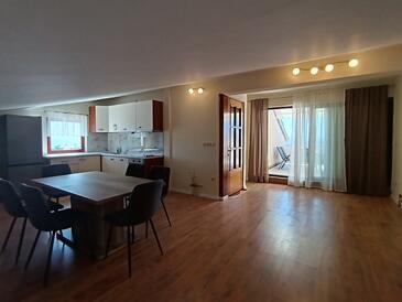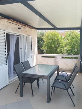 Appartamento può accogliere 4 ospiti. I letti sono disposti nelle camere da letto che sono 2, su 46m2. Gli ospiti hanno a disposizione il proprio terrazzo per godere nelle calde serate estive. Si può preparare il cibo utilizzando il barbecue comune.