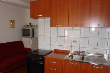 Appartamento può accogliere 4 ospiti. I letti sono disposti nelle camere da letto che sono 1, e nella sala da pranzo, su 28m2. Gli ospiti hanno a disposizione il proprio terrazzo per godere nelle calde serate estive. Dall'appartamento si gode di una vista sul mare. Nell'unità di alloggio si possono portare gli animali domestici con un pagamento supplementare.