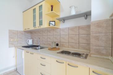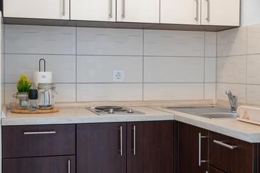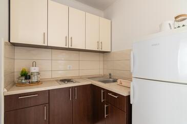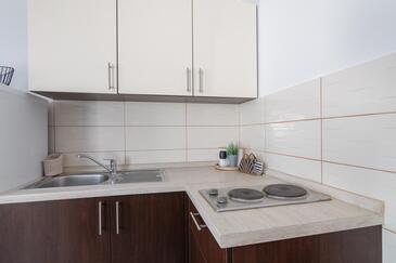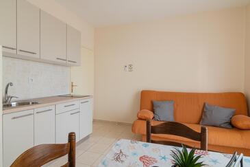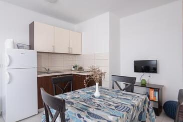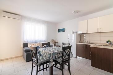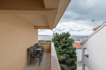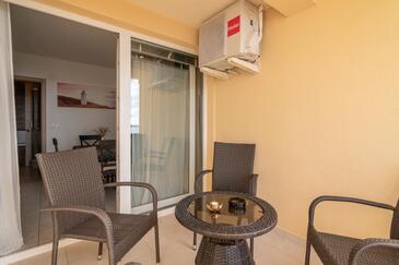 Appartamento può accogliere 5 ospiti. I letti sono disposti nelle camere da letto che sono 2, su 43m2. Gli ospiti hanno a disposizione il proprio terrazzo per godere nelle calde serate estive. Si può preparare il cibo utilizzando il barbecue comune.