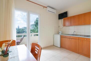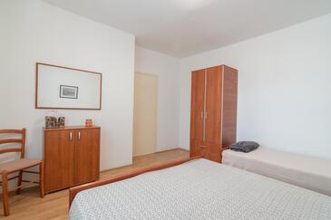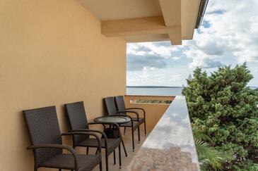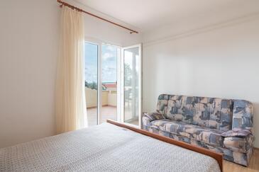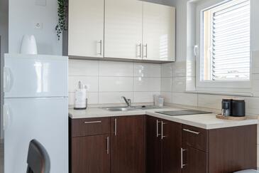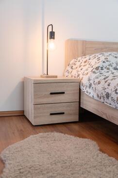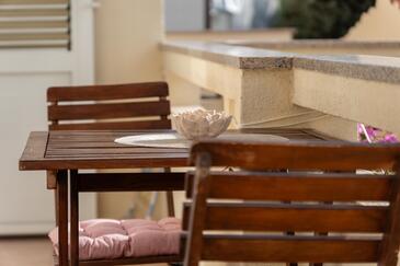 Appartamento può accogliere 5 ospiti. I letti sono disposti nelle camere da letto che sono 2, su 43m2. Gli ospiti hanno a disposizione il proprio terrazzo per godere nelle calde serate estive. Si può preparare il cibo utilizzando il barbecue comune.