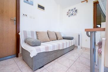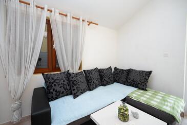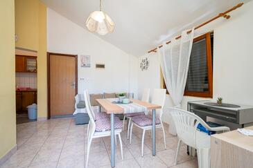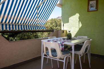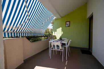 Appartamento può accogliere 4 ospiti. I letti sono disposti nelle camere da letto che sono 2, su 48m2. Gli ospiti hanno a disposizione il proprio terrazzo per godere nelle calde serate estive. Si può preparare il cibo utilizzando il barbecue comune.