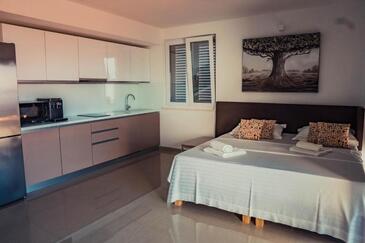 Appartamento può accogliere 4 ospiti. I letti sono disposti nelle camere da letto che sono 1, e nella camera di soggiorno, su 38m2. Gli ospiti hanno a disposizione il proprio balcone per godere delle calde serate estive. Dall'appartamento si gode di una vista sul mare. Si può preparare il cibo utilizzando il barbecue comune. Durante il soggiorno gli ospiti possono utilizzare la piscina comune. Nell'unità di alloggio si possono portare gli animali domestici con un pagamento supplementare.