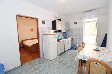 Appartamento può accogliere 6 ospiti. I letti sono disposti nelle camere da letto che sono 2, su 57m2. Gli ospiti hanno a disposizione il proprio terrazzo per godere nelle calde serate estive. Dall'appartamento si gode di una vista sul mare. Si può preparare il cibo utilizzando il barbecue comune.