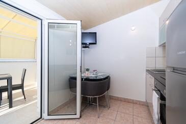 Appartamento può accogliere 6 ospiti. I letti sono disposti nelle camere da letto che sono 2, su 56m2. Gli ospiti hanno a disposizione il proprio terrazzo per godere nelle calde serate estive. Dall'appartamento si gode di una vista sul mare. Si può preparare il cibo utilizzando il barbecue comune. Nell'unità di alloggio si possono portare gli animali domestici con un pagamento supplementare.