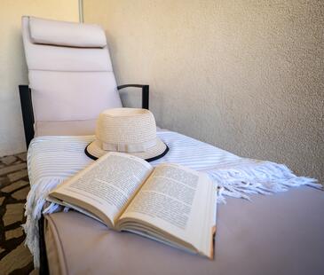 Appartamento può accogliere 4 ospiti. I letti sono disposti nelle camere da letto che sono 2, su 35m2. Gli ospiti hanno a disposizione il proprio terrazzo per godere nelle calde serate estive. Si può preparare il cibo utilizzando il barbecue comune. Nell'unità di alloggio si possono portare gli animali domestici con un pagamento supplementare.