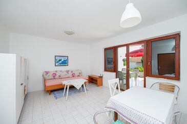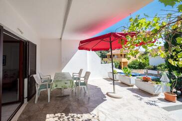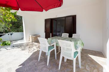 Appartamento può accogliere 4 ospiti. I letti sono disposti nelle camere da letto che sono 2, su 49m2. Gli ospiti hanno a disposizione il proprio terrazzo per godere nelle calde serate estive. Si può preparare il cibo utilizzando il barbecue comune.