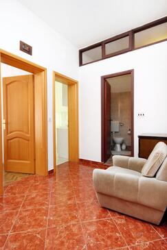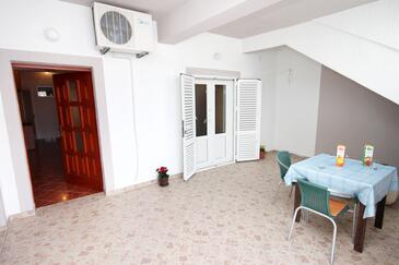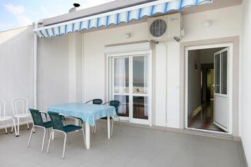 Appartamento può accogliere 4 ospiti. I letti sono disposti nelle camere da letto che sono 2, su 52m2. Gli ospiti hanno a disposizione il proprio terrazzo per godere nelle calde serate estive. Dall'appartamento si gode di una vista sul mare. Si può preparare il cibo utilizzando il barbecue comune.