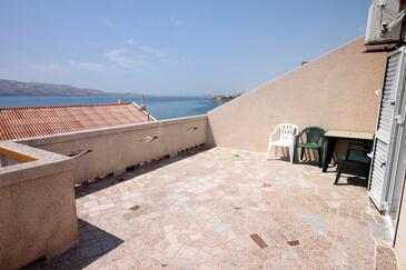 Appartamento può accogliere 6 ospiti. I letti sono disposti nelle camere da letto che sono 2, su 44m2. Gli ospiti hanno a disposizione il proprio terrazzo per godere nelle calde serate estive. Dall'appartamento si gode di una vista sul mare. Si può preparare il cibo utilizzando il barbecue comune.