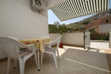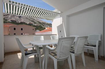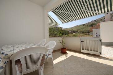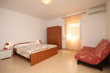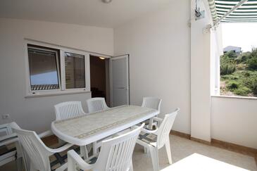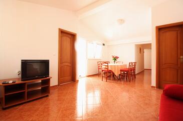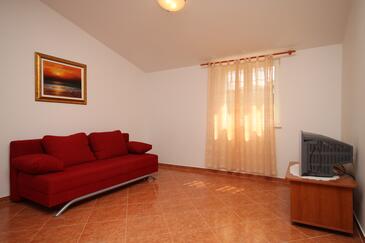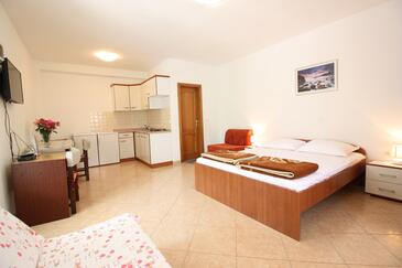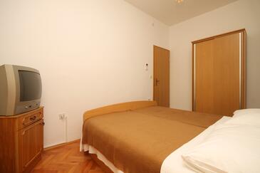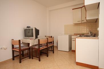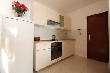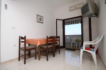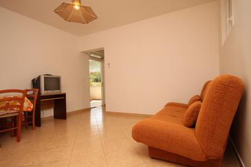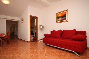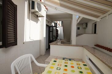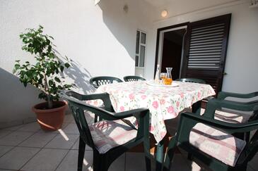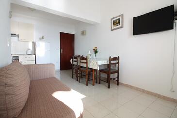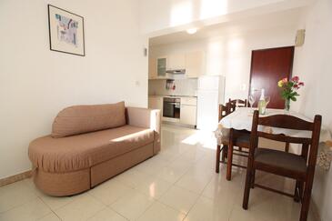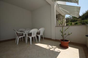 Appartamento può accogliere 6 ospiti. I letti sono disposti nelle camere da letto che sono 2, e nella camera di soggiorno, su 48m2. Gli ospiti hanno a disposizione il proprio terrazzo per godere nelle calde serate estive. Dall'appartamento si gode di una vista sul mare. Si può preparare il cibo utilizzando il barbecue comune.