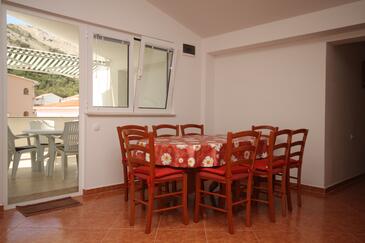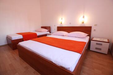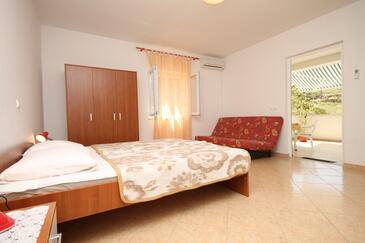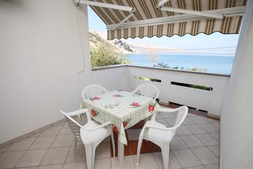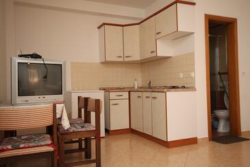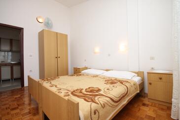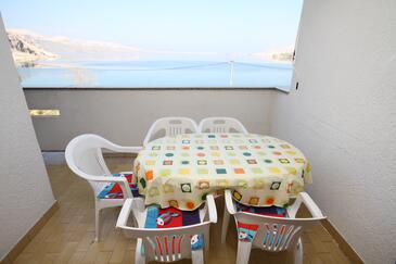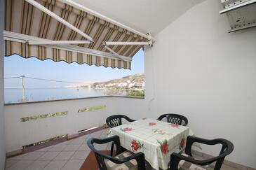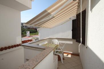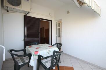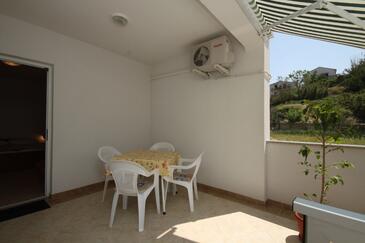 Appartamento può accogliere 6 ospiti. I letti sono disposti nelle camere da letto che sono 2, e nella camera di soggiorno, su 48m2. Gli ospiti hanno a disposizione il proprio terrazzo per godere nelle calde serate estive. Dall'appartamento si gode di una vista sul mare. Si può preparare il cibo utilizzando il barbecue comune.