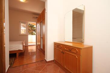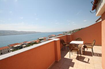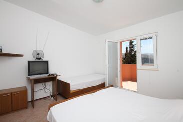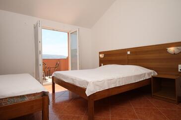 Camera può accogliere 3 ospiti. I letti sono disposti nelle camere da letto che sono 1, su 19m2. Gli ospiti hanno a disposizione il proprio terrazzo per godere nelle calde serate estive. Dalla stanza si gode di una vista sul mare. Si può preparare il cibo utilizzando il barbecue comune. L'unità di alloggio prenotata è una camera con bagno proprio senza possibilità d'utilizzo della cucina.