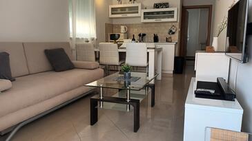 Appartamento può accogliere 4 ospiti. I letti sono disposti nelle camere da letto che sono 2, su 50m2. Gli ospiti hanno a disposizione il proprio terrazzo per godere nelle calde serate estive. Per il piacere totale e il relax c'è il barbecue privato solo per gli ospiti di quest'alloggio.