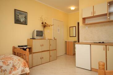 Appartamento può accogliere 3 ospiti. I letti sono disposti nelle camere da letto che sono 1, e nella camera di soggiorno, su 31m2. Gli ospiti hanno a disposizione il proprio terrazzo per godere nelle calde serate estive. Si può preparare il cibo utilizzando il barbecue comune. Nell'unità di alloggio si possono portare gli animali domestici con un pagamento supplementare.