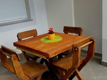 Monolocale può accogliere 3 ospiti. I letti sono disposti nelle camere da letto che sono 1, e nella sala da pranzo, su 26m2. Gli ospiti hanno a disposizione il proprio terrazzo per godere nelle calde serate estive. Si può preparare il cibo utilizzando il barbecue comune. Arrivati nell'unità d'alloggio i clienti devono pagare un deposito (il prezzo è indicato sul sito).