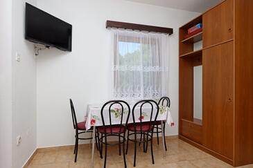 Appartamento può accogliere 4 ospiti. I letti sono disposti nelle camere da letto che sono 1, e nella sala da pranzo, su 25m2. Gli ospiti hanno a disposizione il proprio terrazzo per godere nelle calde serate estive. Dall'appartamento si gode di una vista sul mare. Si può preparare il cibo utilizzando il barbecue comune.