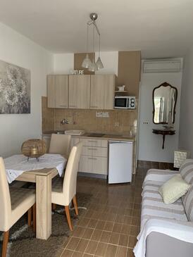 Appartamento può accogliere 4 ospiti. I letti sono disposti nelle camere da letto che sono 2, su 36m2. Gli ospiti hanno a disposizione il proprio terrazzo per godere nelle calde serate estive. Si può preparare il cibo utilizzando il barbecue comune.