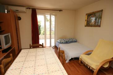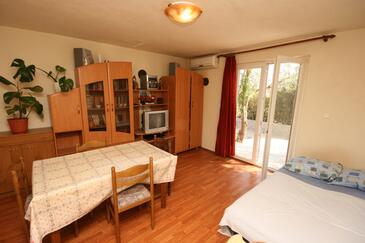 Appartamento può accogliere 4 ospiti. I letti sono disposti nelle camere da letto che sono 1, e nella sala da pranzo, su 47m2. Gli ospiti hanno a disposizione il proprio terrazzo per godere nelle calde serate estive. Dall'appartamento si gode di una vista sul mare. Si può preparare il cibo utilizzando il barbecue comune.