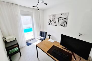 Casa può accogliere 6 ospiti. I letti sono disposti nelle camere da letto che sono 4, su 134m2. Gli ospiti hanno a disposizione il proprio terrazzo per godere nelle calde serate estive. Per il piacere totale e il relax c'è il barbecue privato solo per gli ospiti di quest'alloggio. Durante il soggiorno gli ospiti si possono rilassare nella piscina privata.