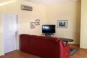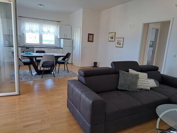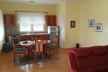 Appartamento può accogliere 4 ospiti. I letti sono disposti nelle camere da letto che sono 2, su 71m2. Gli ospiti hanno a disposizione il proprio terrazzo per godere nelle calde serate estive. Dall'appartamento si gode di una vista sul mare. Si può preparare il cibo utilizzando il barbecue comune.