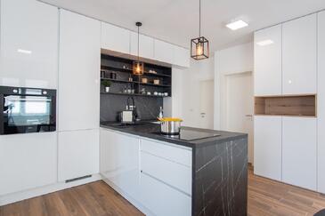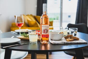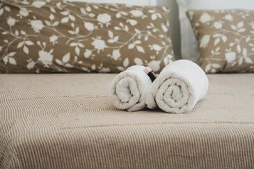 Appartamento può accogliere 5 ospiti. I letti sono disposti nelle camere da letto che sono 2, e nella camera di soggiorno, su 45m2. Gli ospiti hanno a disposizione il proprio balcone per godere delle calde serate estive. Dall'appartamento si gode di una vista sul mare.