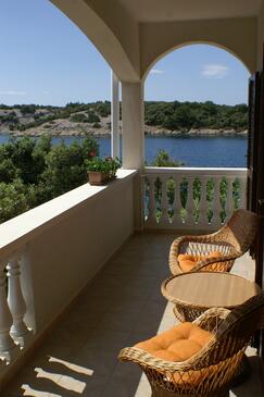 Appartamento può accogliere 5 ospiti. I letti sono disposti nelle camere da letto che sono 2, su 49m2. Gli ospiti hanno a disposizione il proprio terrazzo per godere nelle calde serate estive. Dall'appartamento si gode di una vista sul mare. Si può preparare il cibo utilizzando il barbecue comune.