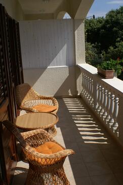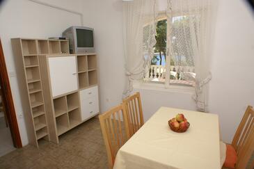 Appartamento può accogliere 5 ospiti. I letti sono disposti nelle camere da letto che sono 2, su 49m2. Gli ospiti hanno a disposizione il proprio terrazzo per godere nelle calde serate estive. Dall'appartamento si gode di una vista sul mare. Si può preparare il cibo utilizzando il barbecue comune.