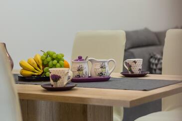 Appartamento può accogliere 4 ospiti. I letti sono disposti nelle camere da letto che sono 2, su 77m2. Gli ospiti hanno a disposizione il proprio terrazzo per godere nelle calde serate estive. Dall'appartamento si gode di una vista sul mare. Si può preparare il cibo utilizzando il barbecue comune. Nell'unità di alloggio si possono portare gli animali domestici con un pagamento supplementare.