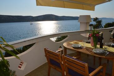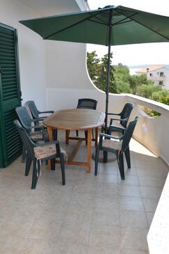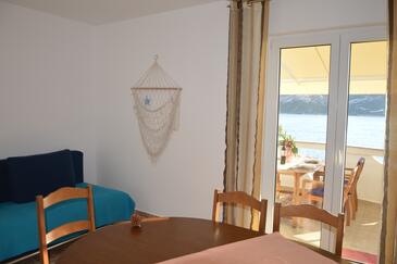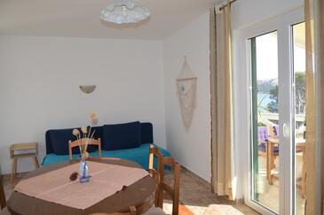 Appartamento può accogliere 6 ospiti. I letti sono disposti nelle camere da letto che sono 2, e nella sala da pranzo, su 51m2. Gli ospiti hanno a disposizione il proprio terrazzo per godere nelle calde serate estive. Dall'appartamento si gode di una vista sul mare. Si può preparare il cibo utilizzando il barbecue comune. Nell'unità di alloggio si possono portare gli animali domestici con un pagamento supplementare. Arrivati nell'unità d'alloggio i clienti devono pagare un deposito (il prezzo è indicato sul sito).