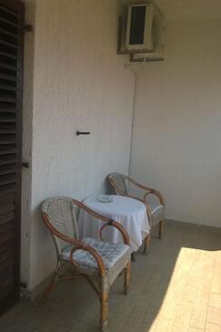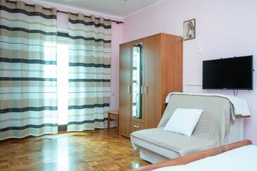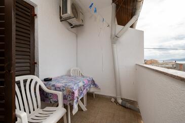 Appartamento può accogliere 4 ospiti. I letti sono disposti nelle camere da letto che sono 2, su 42m2. Gli ospiti hanno a disposizione il proprio balcone per godere delle calde serate estive. Dall'appartamento si gode di una vista sul mare.