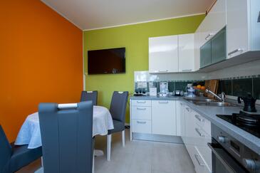 Casa può accogliere 6 ospiti. I letti sono disposti nelle camere da letto che sono 3, su 69m2. Gli ospiti hanno a disposizione il proprio terrazzo per godere nelle calde serate estive. Dalla casa si gode di una vista sul mare. Si può preparare il cibo utilizzando il barbecue comune.