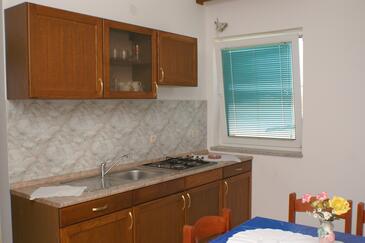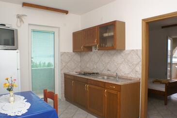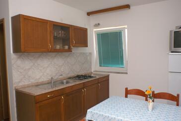 Appartamento può accogliere 4 ospiti. I letti sono disposti nelle camere da letto che sono 2, su 43m2. Gli ospiti hanno a disposizione il proprio terrazzo per godere nelle calde serate estive. Dall'appartamento si gode di una vista sul mare. Si può preparare il cibo utilizzando il barbecue comune.