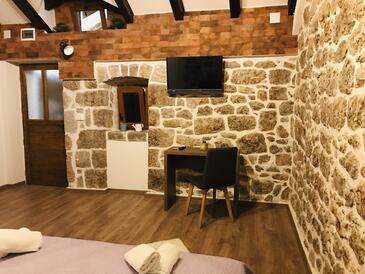 Casa può accogliere 6 ospiti. I letti sono disposti nelle camere da letto che sono 2, e nella camera di soggiorno, su 74m2. Gli ospiti hanno a disposizione il proprio terrazzo per godere nelle calde serate estive. Dalla casa si gode di una vista sul mare. Le stanze dell'unità d'alloggio non sono connesse in un insieme. L'unità d'alloggio ha delle stanze separate dal resto dell'unità.