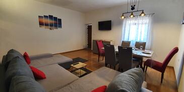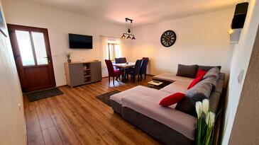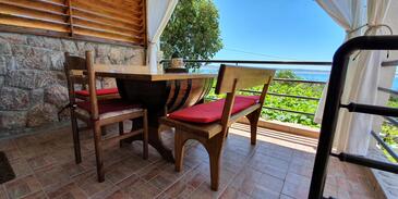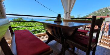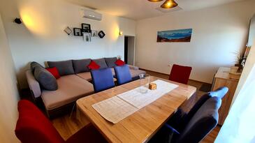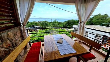 Casa può accogliere 6 ospiti. I letti sono disposti nelle camere da letto che sono 2, e nella camera di soggiorno, su 74m2. Gli ospiti hanno a disposizione il proprio terrazzo per godere nelle calde serate estive. Dalla casa si gode di una vista sul mare. Le stanze dell'unità d'alloggio non sono connesse in un insieme. L'unità d'alloggio ha delle stanze separate dal resto dell'unità.