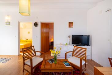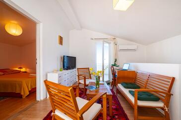 Appartamento può accogliere 6 ospiti. I letti sono disposti nelle camere da letto che sono 3, su 71m2. Gli ospiti hanno a disposizione il proprio terrazzo per godere nelle calde serate estive. Dall'appartamento si gode di una vista sul mare. Si può preparare il cibo utilizzando il barbecue comune. Nell'unità di alloggio si possono portare gli animali domestici con un pagamento supplementare.