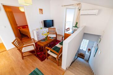Appartamento può accogliere 6 ospiti. I letti sono disposti nelle camere da letto che sono 3, su 71m2. Gli ospiti hanno a disposizione il proprio terrazzo per godere nelle calde serate estive. Dall'appartamento si gode di una vista sul mare. Si può preparare il cibo utilizzando il barbecue comune. Nell'unità di alloggio si possono portare gli animali domestici con un pagamento supplementare.